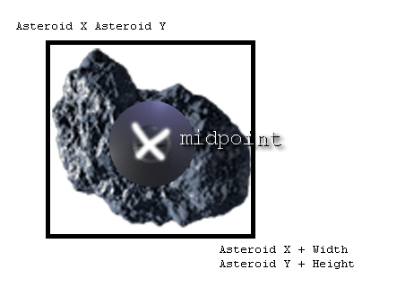 We can then check if midpoint x greater than asteroid x and is also less than asteroid x + asteroid width
