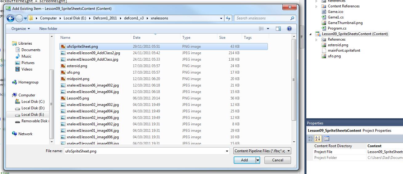 Create 2 new variables ufoSpriteNum and ufoWidth in the global varaiable sections of your code (just before the public Game1() function)